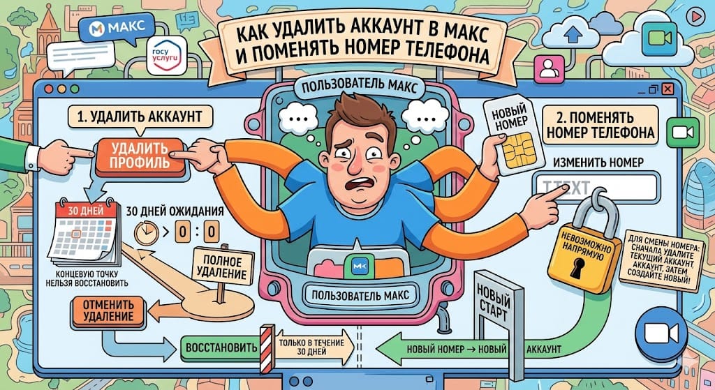 В МАКС нет штатного способа поменять номер телефона на существующем аккаунте. Номер - это основной идентификатор пользователя в системе, и изменить его постфактум невозможно. Это техническое ограничение платформы, а не временная недоработка.
